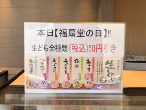 毎月29日は『福扇堂の日』で、生どらを全種類50円引にしてくれるという太っ腹なお店でもあります。